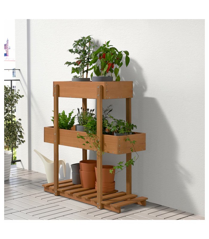 جعبه گل ایکیا مدل HATTHOLMEN از چوب اکالیپتوس، مناسب برای فضای بیرونی