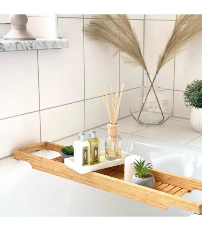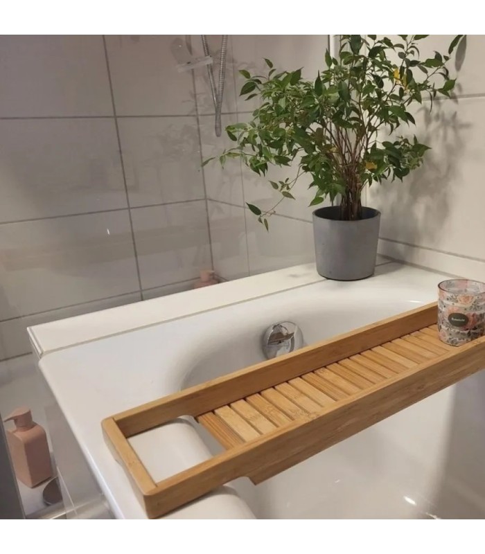 رک حمام HAVERN از جنس بامبو طراحی شده است که یک متریال طبیعی، مقاوم و آسان برای مراقبت است. این رک ایدهآل برای افرادی است که میخواهند در طول یک حمام گرم و آرامشبخش، همه چیز را در دسترس داشته باشند. با طول ۷۰ سانتیمتر، این رک فضای کافی برای قرار دادن حوله، شامپو، کتاب یا حتی نوشیدنیهای شما را فراهم میکند و لحظات لذتبخش حمام را به شما هدیه میدهد.