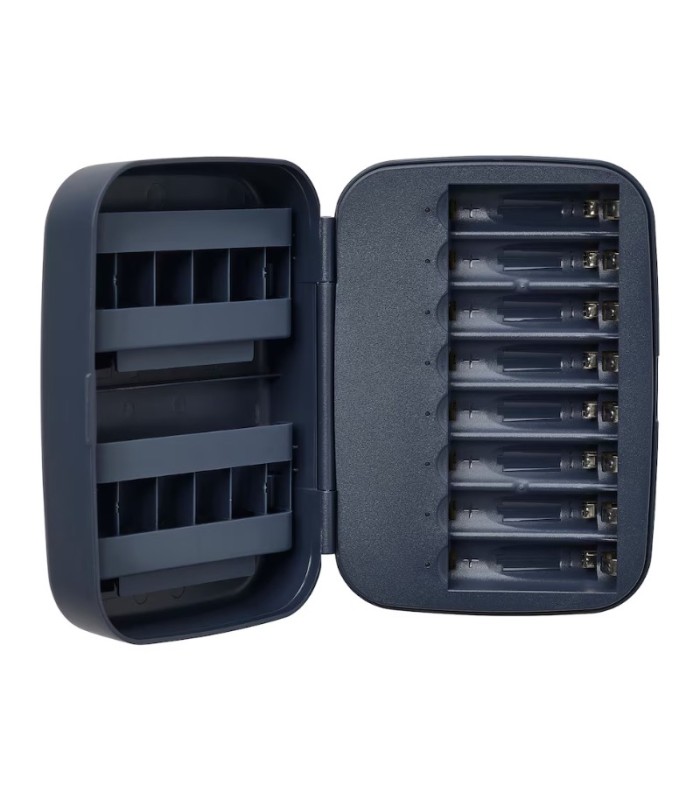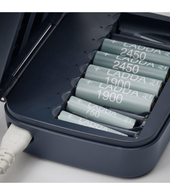 شارژر LITOSFÄR دارای ۸ اسلات جداگانه برای شارژ همزمان ۱ تا ۸ باتری قابل شارژ از نوع AA و AAA است. همچنین بخش ذخیرهسازی در سمت چپ محصول امکان نگهداری ۸ باتری AA و ۴ باتری AAA را فراهم میکند.