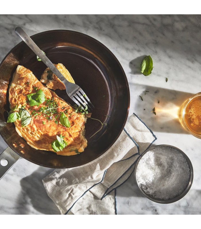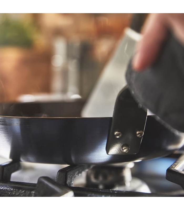 این تابه از فولاد کربنی (Carbon Steel) ساخته شده است؛ جنسی که بهدلیل انتقال حرارت سریع و یکنواخت، محبوبترین انتخاب در آشپزخانههای حرفهای دنیاست. پس از روغنکاری (Seasoning)، سطح تابه بهطور طبیعی ضد چسب (Non-stick) میشود و هرچه بیشتر از آن استفاده کنید، عملکرد آن بهتر میشود.