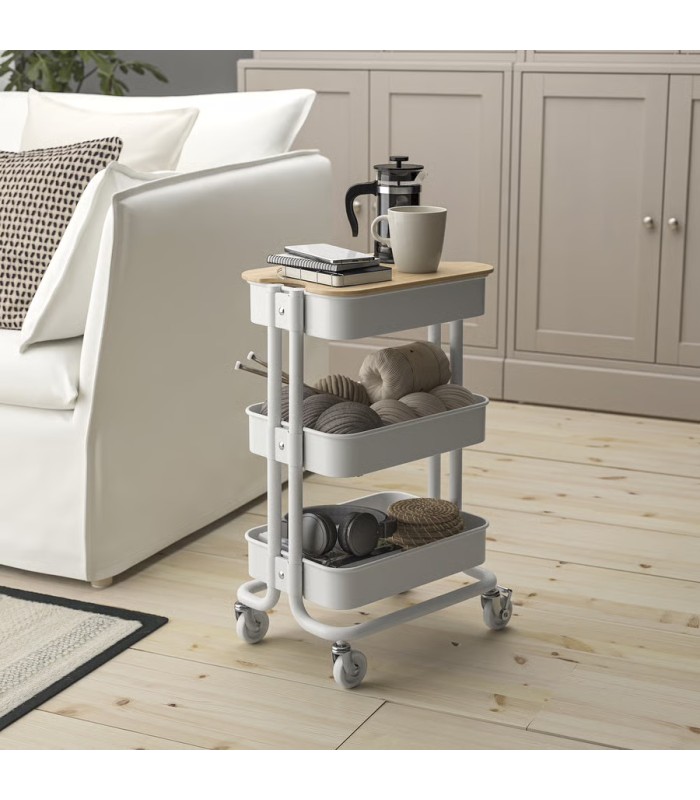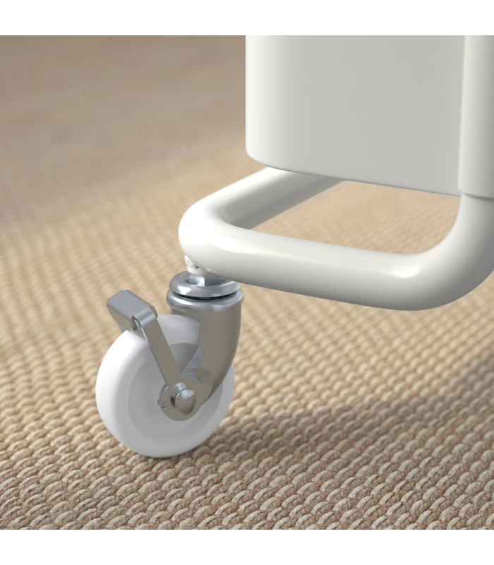 RÅSKOG مجهز به چهار چرخ روان با قابلیت قفل شدن است. این ویژگی باعث میشود در زمان استفاده ترولی تکان نخورد و کاملاً ثابت بماند، در عین حال به راحتی بتوان آن را به نقاط مختلف خانه منتقل کرد.