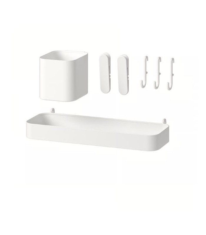 این مجموعه شامل ۲ گیره، ۳ قلاب، ۱ محفظه و ۱ طبقه کوچک میباشد و بدون نیاز به ابزار خاص، روی پگ بورد SKÅDIS قابل نصب و جابجایی است. رنگ سفید آن با اکثر دکوراسیونها هماهنگ بوده و ظاهری مینیمال و زیبا ایجاد میکند.