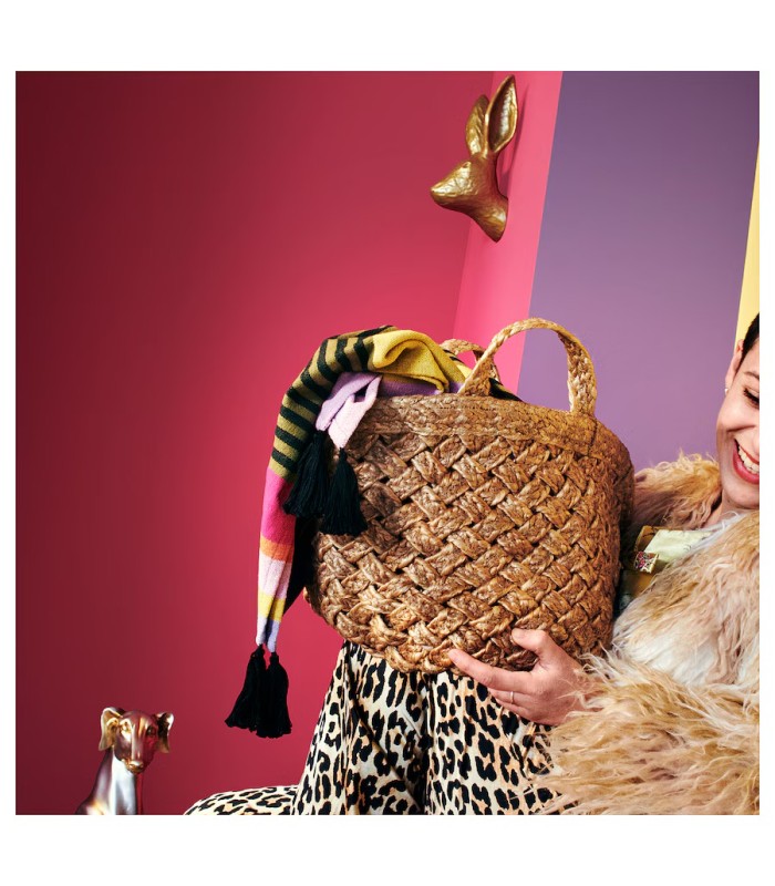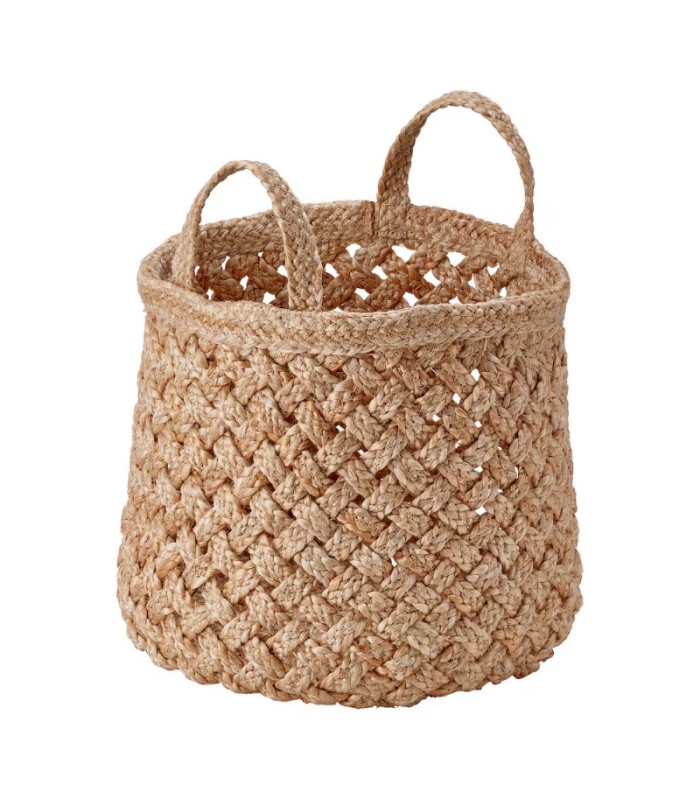 - ابعاد و رنگ: سبد MÄVINN با قطر ۳۱ و ارتفاع ۲۹ سانتیمتر و رنگ طبیعی جوت، مناسب برای انواع محیطها و فضاها است.