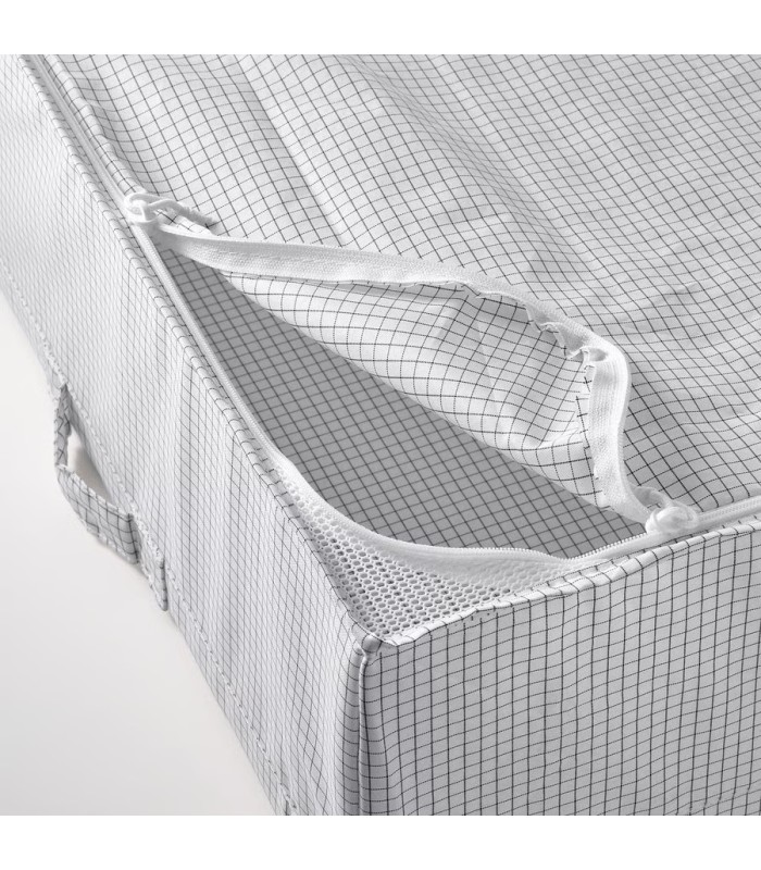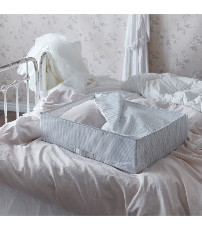 باکس ذخیره ایکیا مدل STUK با رنگ خاکستری و طراحی ساده و مدرن، یک گزینه ایدهآل برای نگهداری لباسهای فصلی، ملحفه، پتو و وسایل اضافی در خانه است. این باکس کمک میکند تا محیط منزل شما مرتب و منظم باقی بماند و وسایل از گرد و غبار محافظت شوند.