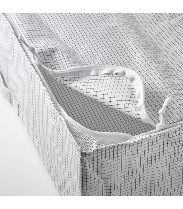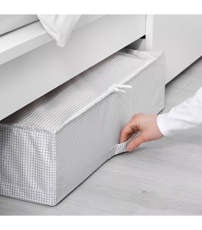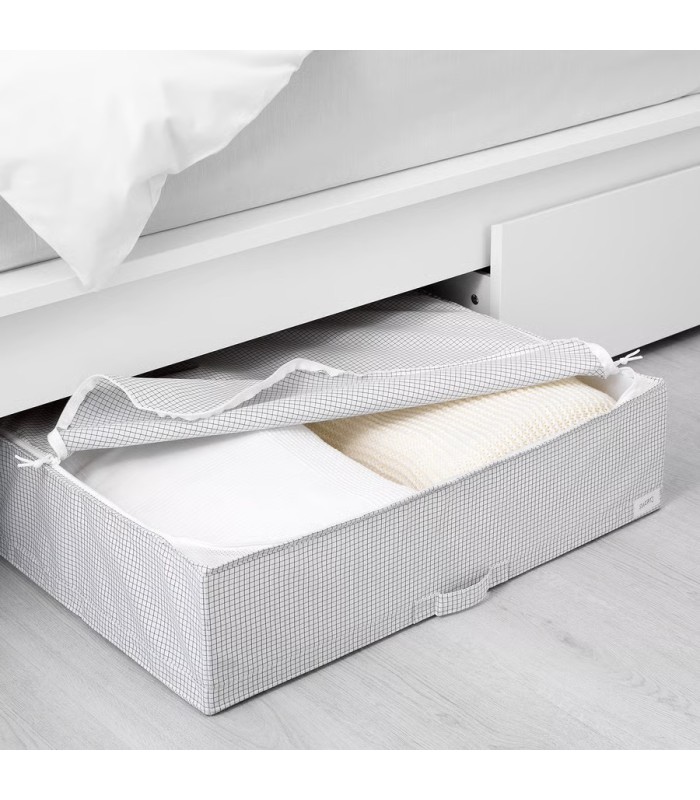 باکس ذخیره ایکیا مدل STUK با رنگ خاکستری و طراحی ساده و مدرن، یک گزینه ایدهآل برای نگهداری لباسهای فصلی، ملحفه، پتو و وسایل اضافی در خانه است. این باکس کمک میکند تا محیط منزل شما مرتب و منظم باقی بماند و وسایل از گرد و غبار محافظت شوند.