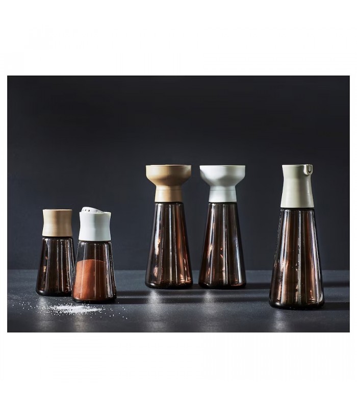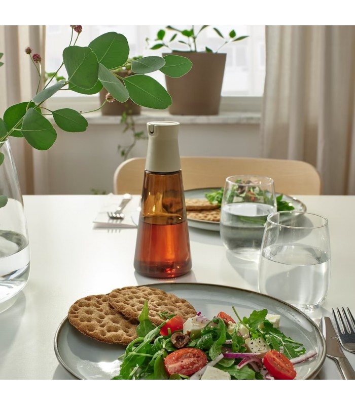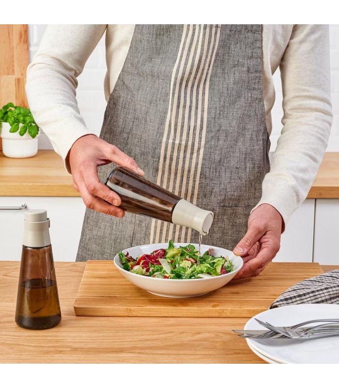 طراحی زیبا و شیشه قهوه ایی این ظرف روغن و آبلیمو ایکیا مدل HALVTOM به این معنی است که شما با خوشحالی آنها را در کنار اجاق گاز و روی میز ناهار خوری خواهید دید.
