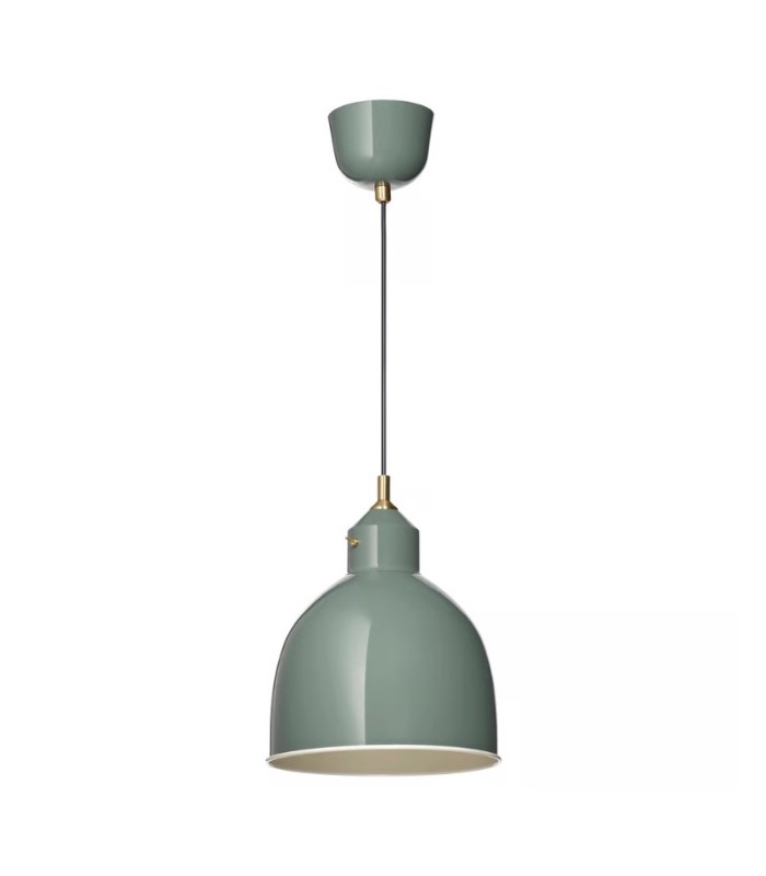 چراغ آویز ایکیا مدل RÖDFLIK با رنگ سبز خاکستری، طراحی صنعتی، قطر ۲۸ سانتیمتر، جنس فولاد با پوشش پودری و کابل ۱.۸ متری. مناسب برای آشپزخانه و میز ناهارخوری. خرید محصولات اصل ایکیا از فروشگاه ایکیا جم.