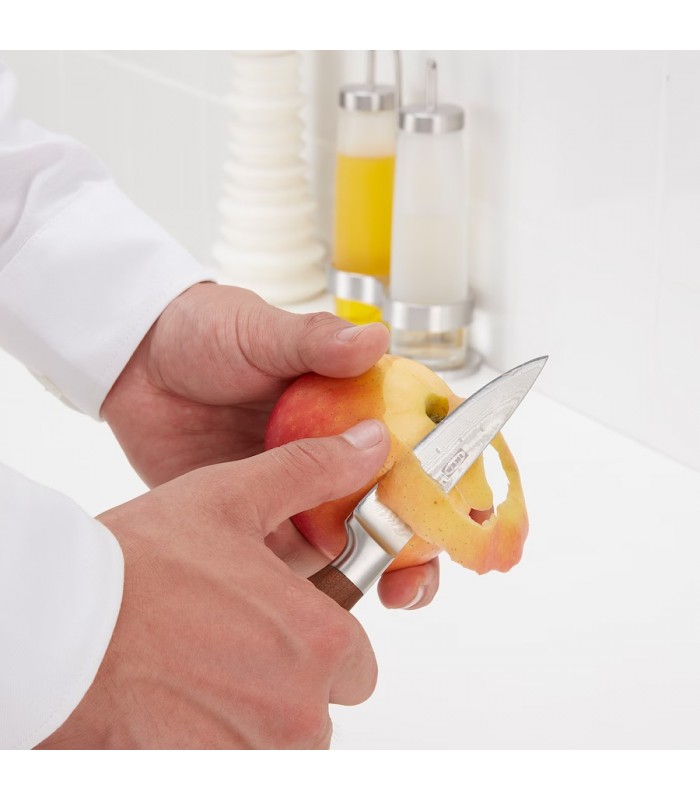 ساخته شده از استنلس استیل ضد زنگ و فولاد دمشق با هسته VG10، به این معنی که چاقو برای مدت زمان طولانی تیز می ماند.
