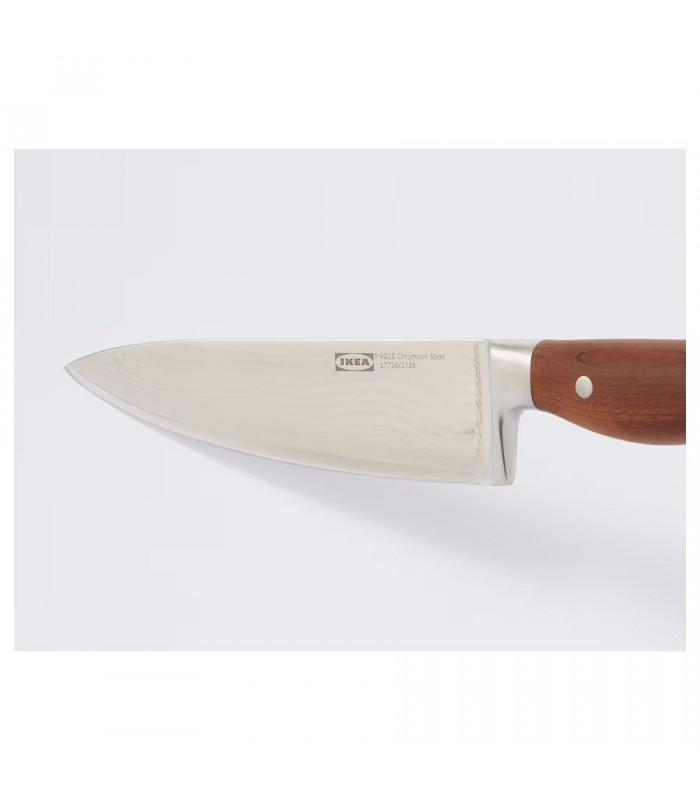 تیغه ی این چاقوی برند ایکیا از فولاد دمشقی ۶۷ لایه ساخته شده است ، که توسط فولاد نرم تری احاطه شده است که تیغه را بادوام می کند.